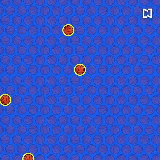 어떻게 제한된 시간 안에 그림 속의 농구공들 사이에 숨겨져 있는 배구공 4개를 찾아내셨습니까. 결코 쉬운 문제가 아닌데요.