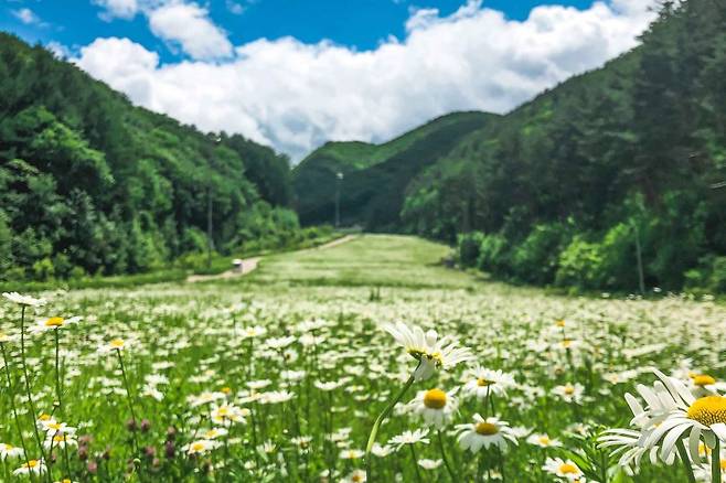 상상해 보세요! 하얀 눈 대신 미소 짓는 계란후라이 꽃이 끝없이 펼쳐진 장관을! 광활한 데이지 군락지들 사이로 예쁜 표정과 함께 인생샷을 남겨보세요.