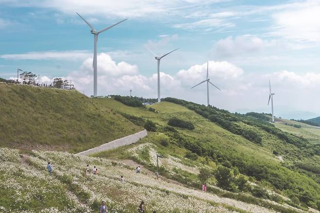거대한 풍력발전기와 드넓은 초원, 그리고 밝게 웃는 계란후라이 꽃 데이지. 이 모든 것을 배경으로 두고 예쁜 포즈와 함께 추억을 남겨보는 것은 어떠세요?