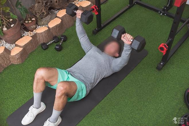 5. 가슴 안쪽과 외곽 라인을 동시에 강화하는 '덤벨 플라이'