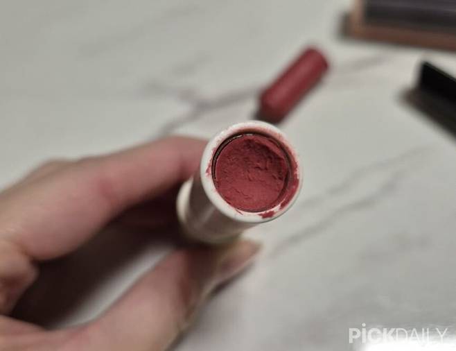 먼저 립스틱이 부러진 부분을 평평하게 만들어줘야 한다. 본체에 붙어 있는 쪽의 립스틱을 평평하게 만들어주면 된다. 물티슈로 닦아 주거나 면봉을 이용해 닦아내듯 평평하게 만들어준다.