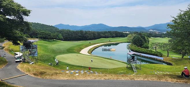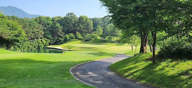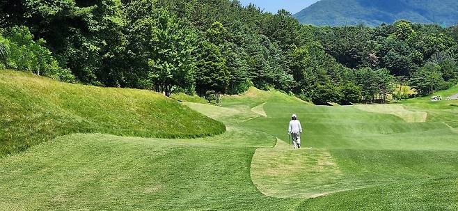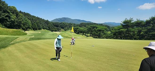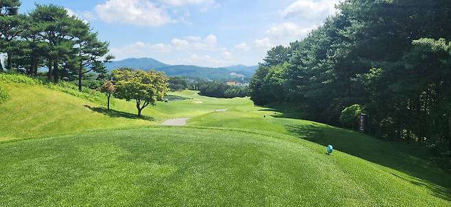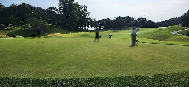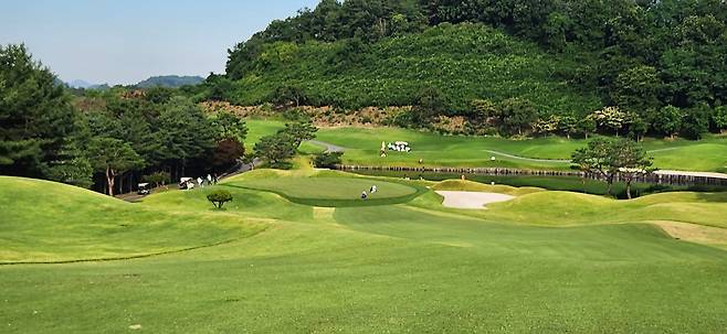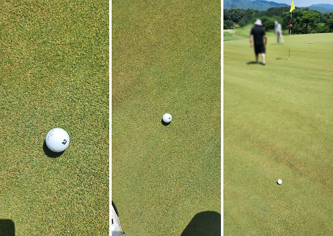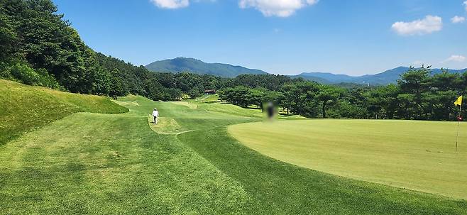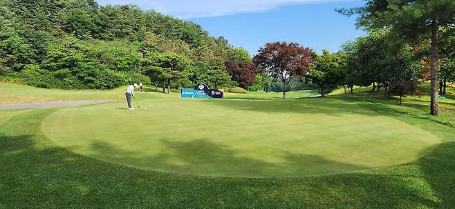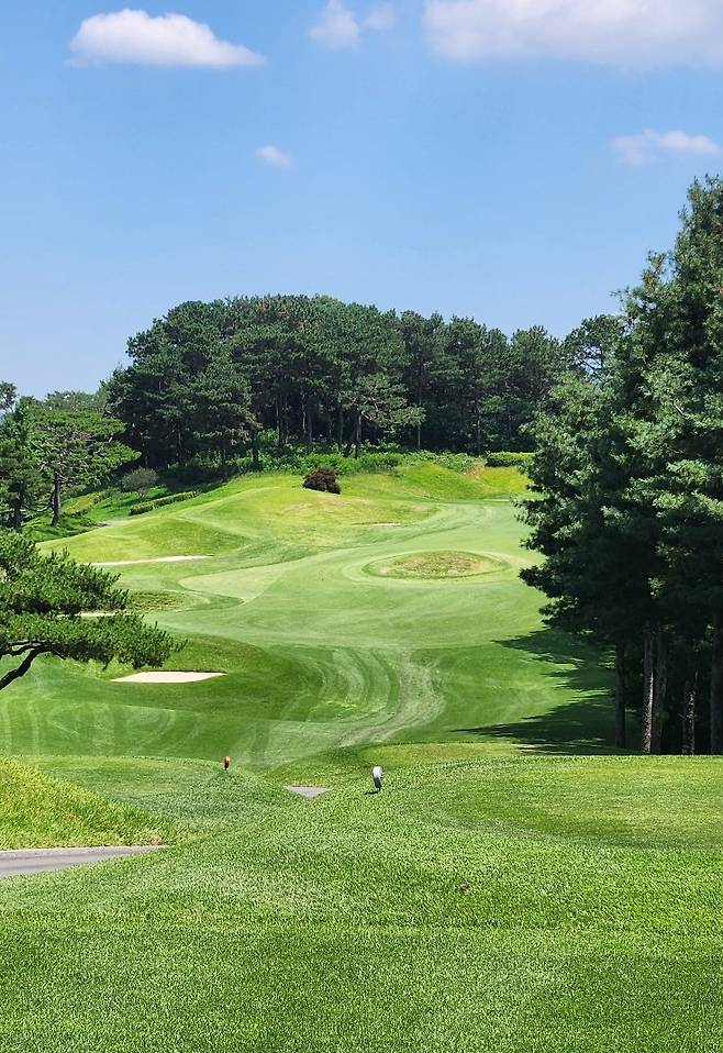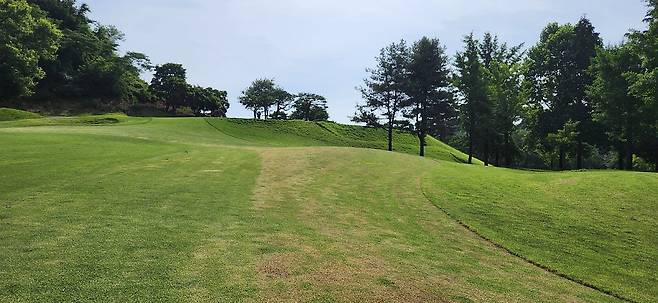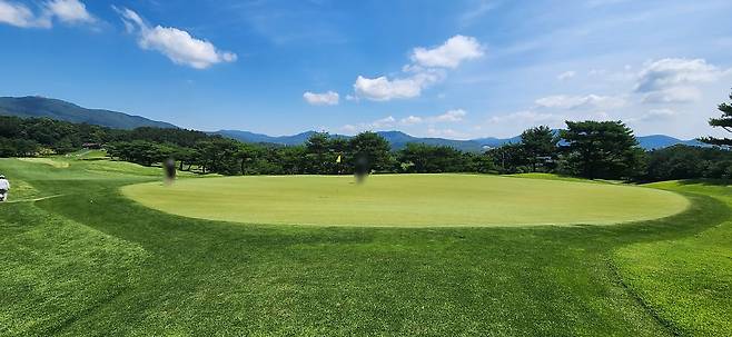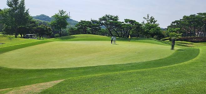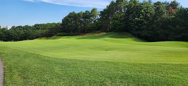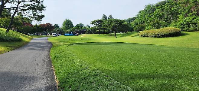 대회 상태라는 그런지 모르지만 다른 골프장보다 에이프런이 조금 더 넓고 그린 앞으로도 페어웨이로 이어집니다. 따라서, 오르막 홀에 어프로치가 짧으면 공이 여지없이 굴러내린다는 거지요. 다행히 고저 차이가 큰 홀은 두어 개만 기억나네요. 반면, 그린 주변에 가끔 굴곡이 심해서 어드레스가 안 나오는 트러블 샷이 많았습니다.
