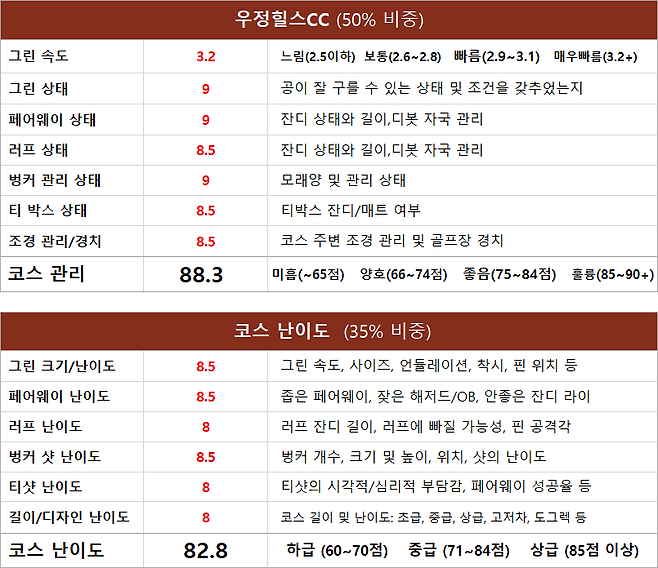 2024 코오롱 한국오픈은 김민규 프로님의 우승으로 막을 내렸지요. 대회도 가서 직접 관람했는데 코스 상태가 모두 최상이고 그린 속도는 최대 4.3미터까지 나와서 프로들도 쩔쩔매는 모습이 자주 보였습니다. 대회가 끝난 다음 주 수요일에 플레이 한 결과, 왜 매년 나라 이름이 걸린 챔피언십을 호스팅한지 알 수 있었습니다. 아래는 조금 더 인간적인 3.2미터 그린 속도의 우정힐스 CC를 플레이 한 후기입니다.