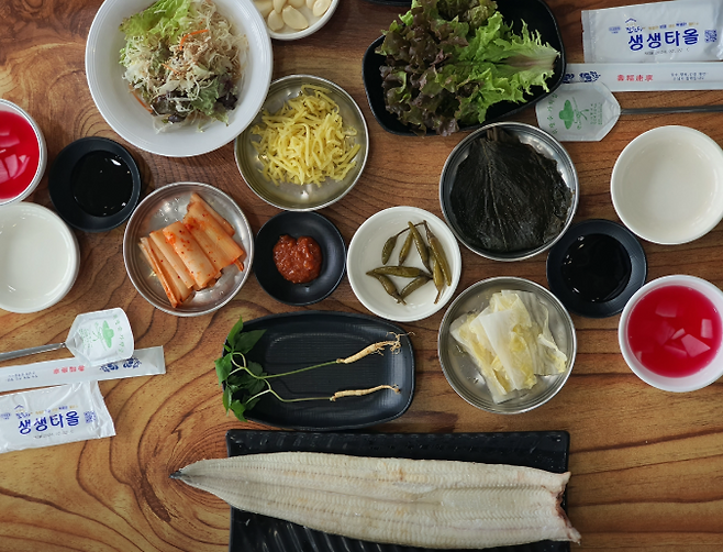 국내산 민물장어만 사용하며, 도톰하고 탱글한 장어는 직원이 직접 구워줘 편하게 즐길 수 있습니다. 야들야들한 장어에 부추무침, 파채무침, 깻잎장아찌가 곁들여져 완벽한 조화를 이룹니다.