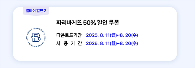 이번 행사는 2025년 8월 11일부터 20일까지 단 10일간 전국 파리바게트 매장에서 진행됩니다. SK텔레콤 T멤버십 앱에서 쿠폰을 다운로드해 매장에서 제시하면, 결제 금액의 50%를 즉시 할인받을 수 있습니다. 다만 1인당 최대 2만 원 한도 내에서만 적용되며, 1회에 한해 사용할 수 있습니다.