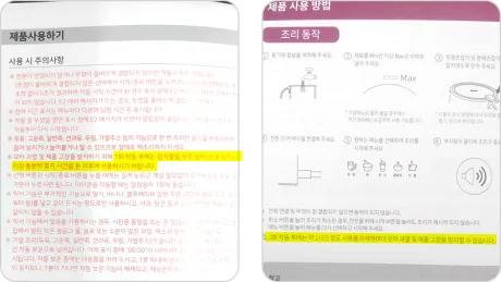 모든 제품의 설명서마다 기재되어 있는 사항이지만, 작은 글씨로 써 있기도 하고 설명서를 정독하는 것은 상당히 귀찮은 일입니다.
