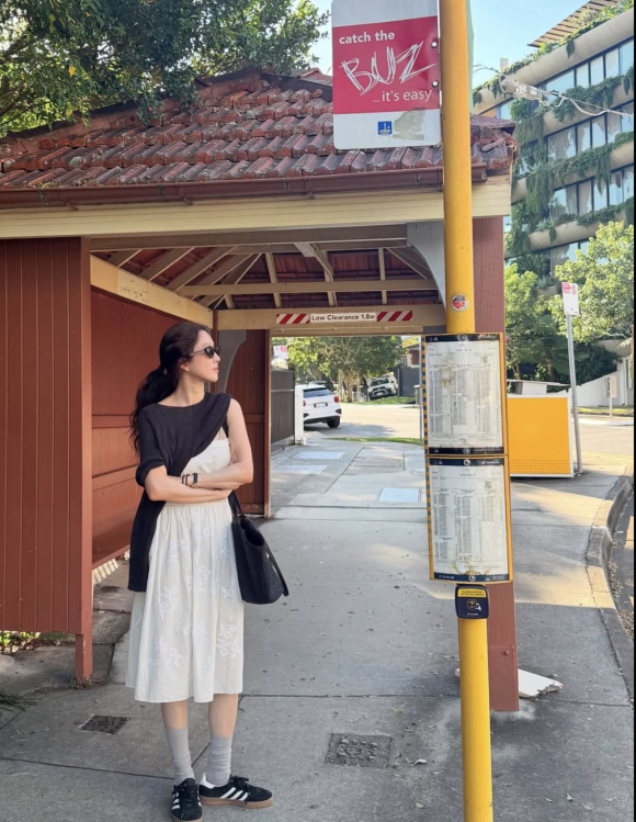 엄마와의 여행이라는 따뜻한 일상 속에서도, 그녀는 여전히 자신만의 패션 아이덴티티를 드러냈다.
