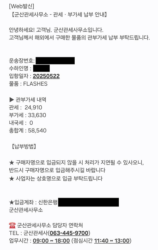 금일 관부가세 안내를 받았습니다. 공교롭게 캐논코리아 동조기 제고 알람문자도 금일 왔네요;;