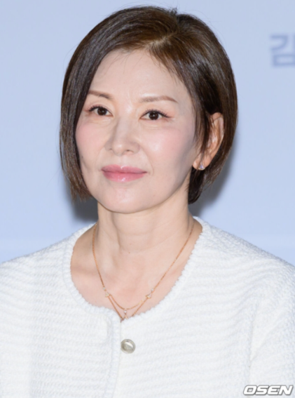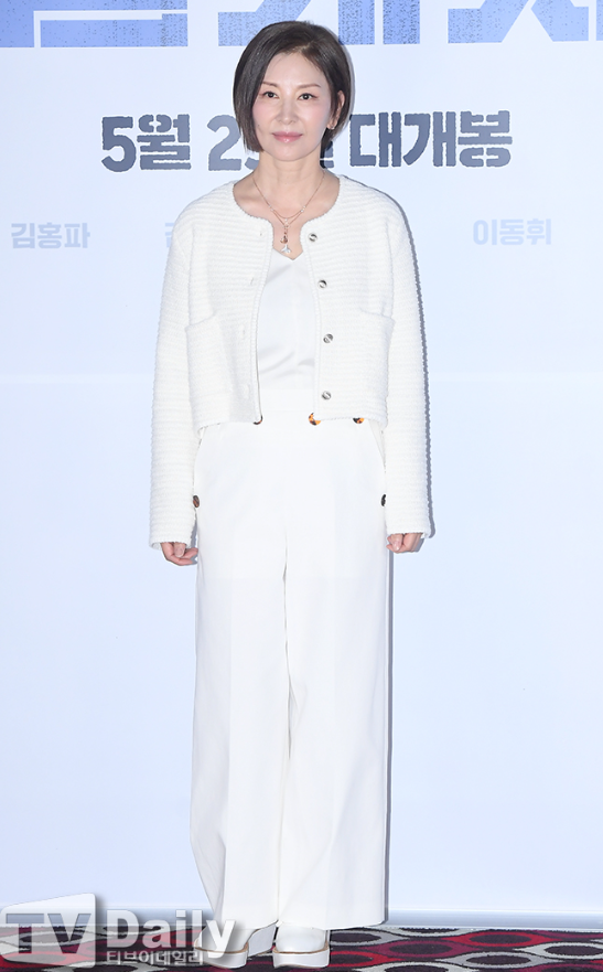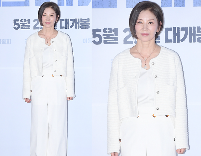 화이트 컬러의 세련된 스타일은 이미숙의 고급스럽고 우아한 이미지를 더욱 돋보이게 했습니다. 여기에 골드 버튼과 골드 목걸이를 더해 은은하게 세련미를 더했습니다.