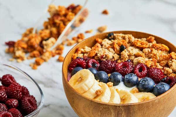 요거트와 환상의 짝꿍인 그래놀라는 다이어트할 때 많이 찾는 식품이다. 우선 오트밀과 함께 견과류와 말린 과일을 볼에 넣어 고르게 섞이도록 버무린다. 그 후 그래놀라의 달달한 풍미를 돋워줄 메이플 시럽, 계피 가루 그리고 칼로리가 낮은 올리고당을 넣어 섞어준다. 섞은 재료를 오븐 트레이 위에 호일을 깔고 얇게 펴준 후 180℃로 예열한 오븐에 10~20분 구워준다. 서늘한 곳에 보관 후 꺼내면 바삭바삭한 식감의 그래놀라 완성이다.