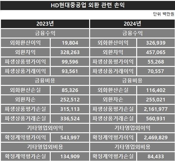 HD현대중공업 관계자는 “불확실한 대내외 환경을 고려해 환헤지 전략을 통해 외화 변동 리스크에 대응하고 있다”고 밝혔다.