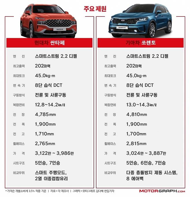 연비 경쟁에서 쏘렌토 위협하는 싼타페