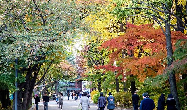 덕수궁의 단풍 절정기는 10월 말에서 11월 초로 예상된다. 궁 안 곳곳에 단풍나무가 고르게 심겨 있어 어디서든 가을 정취를 느낄 수 있다.