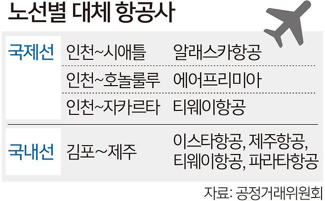 대한항공과 아시아나항공의 기업 결합에 따라 인천~시애틀 노선이 외항사인 알래스카항공에 넘어간다. 인천~자카르타 노선에는 티웨이항공이 상반기 중 운항을 시작한다.