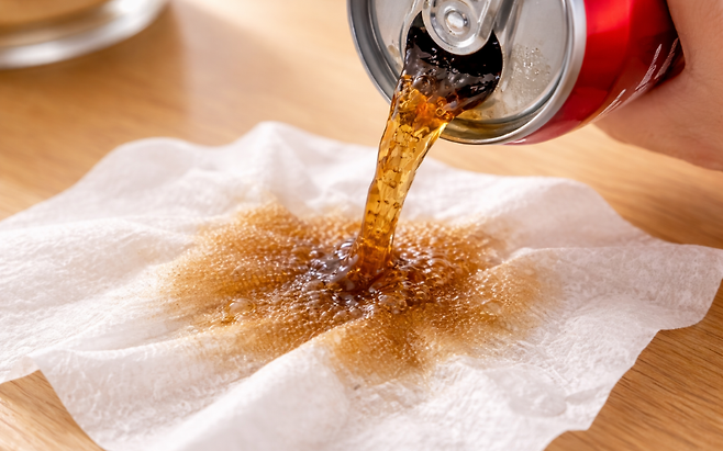 물티슈에 콜라를 살짝 부셔 적신 뒤, 가스레인지 주변이나 후드 표면을 닦아보세요. 콜라의 산성 성분이 오래된 기름때를 느슨하게 만들어 줍니다.