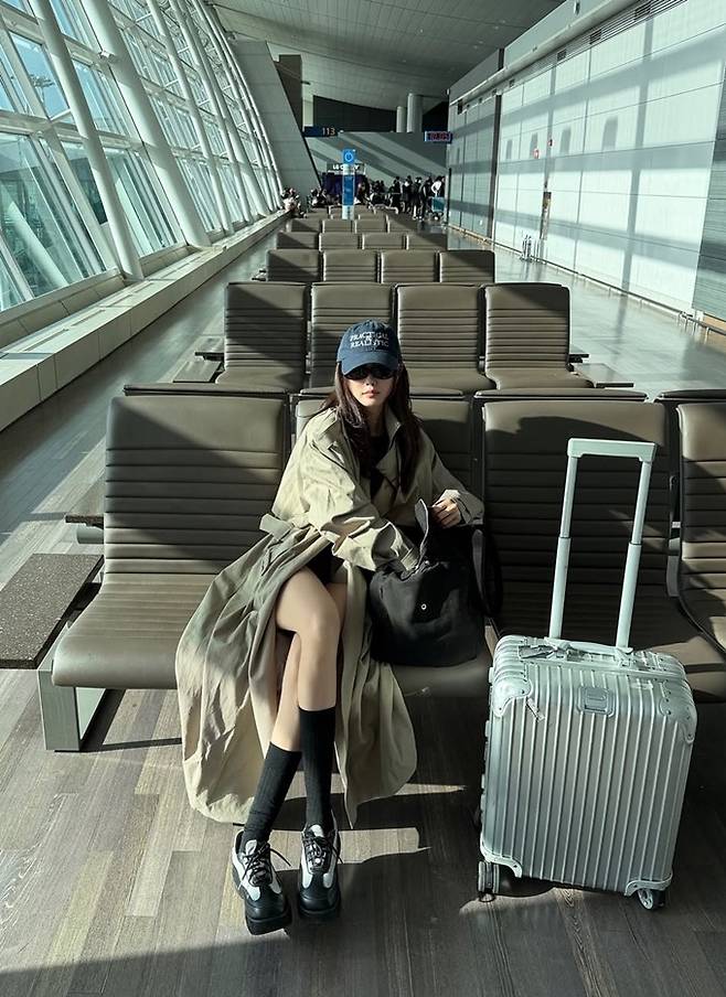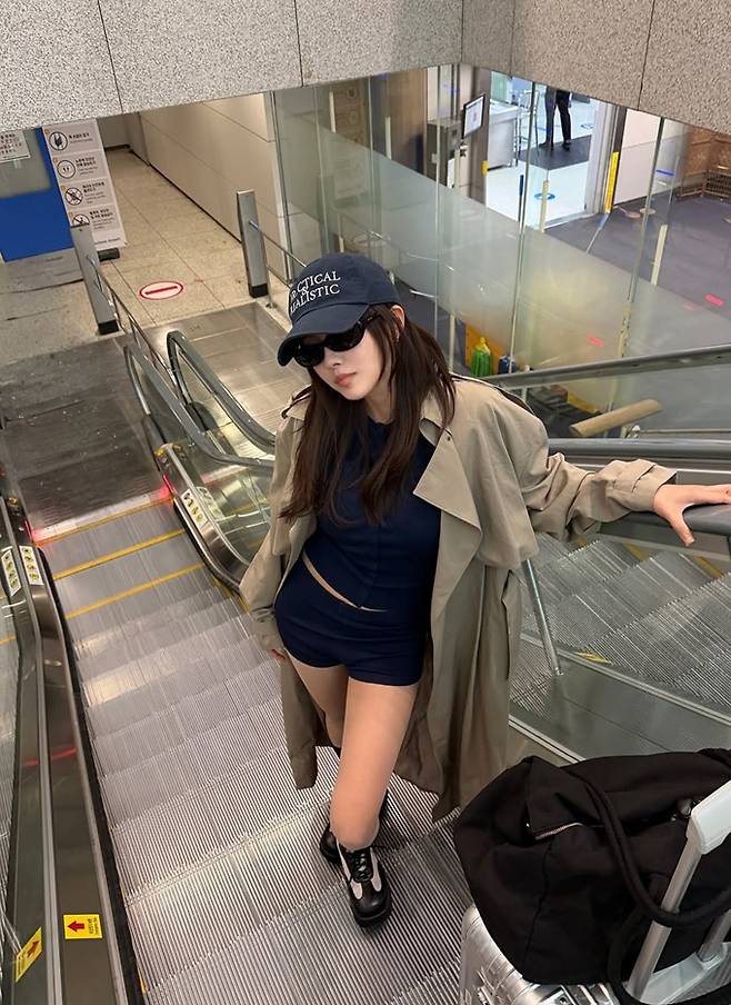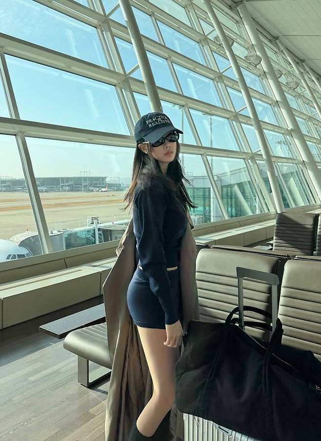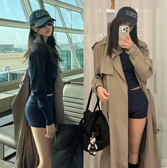 공개한 사진에서 효민은 탄탄한 몸매가 드러난 다크 네이비 컬러의 쇼츠와 크롭 재킷의 애슬레저 셋업에 트렌치코트를 걸친 출국룩으로 스타일리시하면서도 자유분방한 모습을 드러냈다.