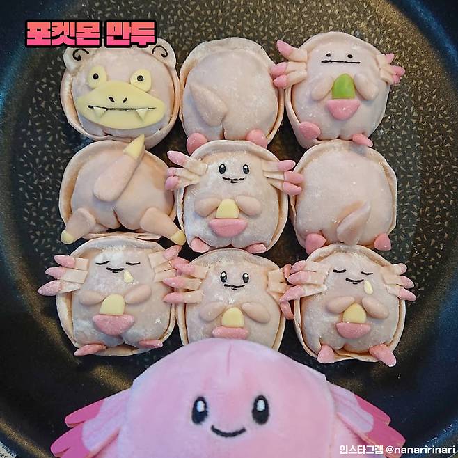 아니 이게 설마 먹는 거라고? 싶은 귀요운 비주얼의 이것. 다름 아닌 만두입니다. 고라파덕부터 메타몽, 피카츄까지 포켓몬을 그대로 만두로 복붙해놓았더라구요.