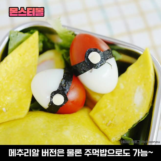 몬스터볼은 포켓몬 도시락을 도전하는 분들이 꽤 많은 시도를 하고 계신 것 같은데, 메추리알 외에도 주먹밥 형태로 스팸 반쪽/밥 반쪽의 조합으로도 완성될 수 있다고 하니 참고하세요.