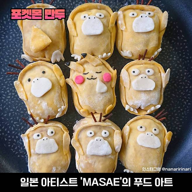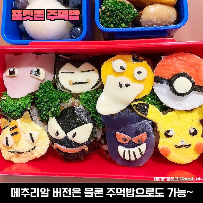 고라파덕에 몬스터볼, 냐옹이, 피카츄 등 종류도 엄청 다양하게 준비되어 있죠. 이런 도시락 소풍 가서 챠악 꺼내면 단번에 이목이 집중될 것 같네요~ 그러고 보면 포켓몬빵은 단순히 띠부실 때문에 포켓몬빵이지, 제품 자체에는 포켓몬의 흔적이 없는데 이런 셀프 도시락, 요리들은 비주얼부터가 남달라서 더 눈이 갑니다요.