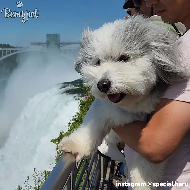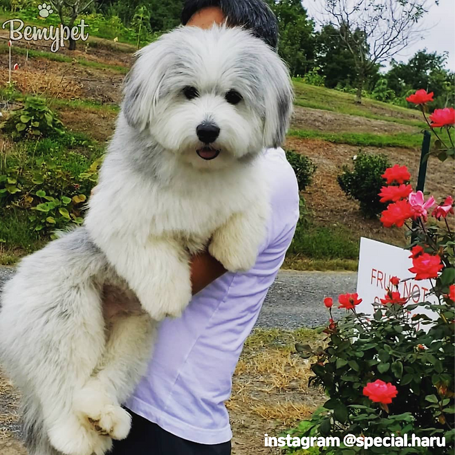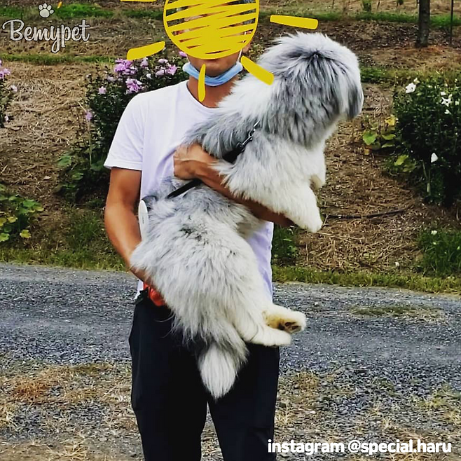 하루는 3개월 때 이미 아빠인 말티즈의 덩치를 넘어 섰다고 하는데요. 지금은 쑥쑥 자라 사진으로 볼 수 있듯 중형견 정도의 크기가 되었어요. 하루를 들고 계신 보호자님 키가 180cm 정도 되신다고 하네요!