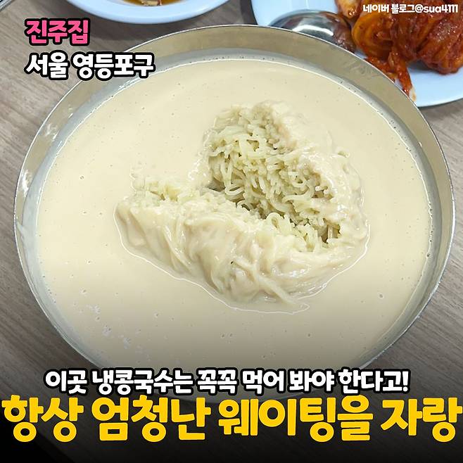 냉콩국수 맛집으로 유명한 진주집은 콩국수를 안 좋아해도 꼭 한번은 먹어봐야한다는 곳이에요~ 진주집은 2014년부터 블루리본 스티커를 받은 걸 문에서 확인할 수 있는데요.