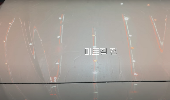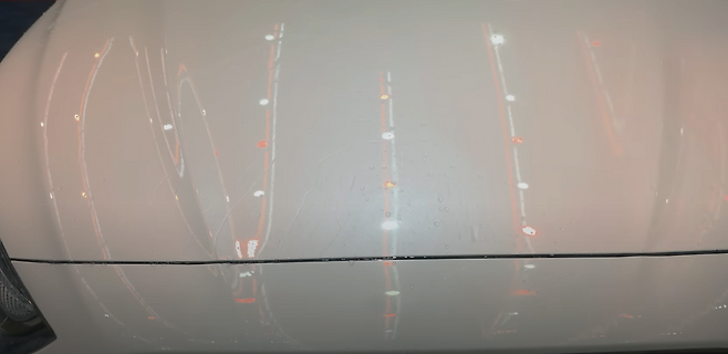 미트질 전 모습을 살펴보면 물이 뭉치지 않고 흘러내리며 쉬팅력 또한 높은 모습을 볼 수 있습니다. 확실히 코팅이 제대로 되어있다는 느낌을 받을 수 있었습니다.
