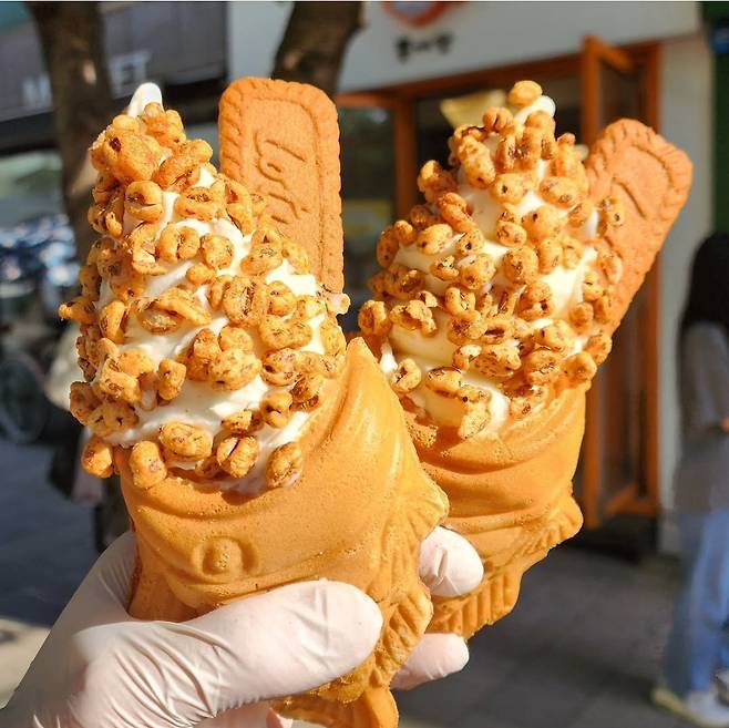 추운 겨울에도 아이스크림을 찾게 되는 마성의 붕어빵. 이름은 ‘아뿡’으로 오레오, 죠리퐁 등 다양한 종류의 토핑을 고를 수 있다. 성신여대 바로 앞에 위치하고 있어 대학생들도 자주 찾으며 테이크 아웃 전문점이다. 12가지 가루와 프리미엄 고메 발효버터를 이용해 겉은 바삭, 속은 쫀득한 붕어빵을 만든다.
