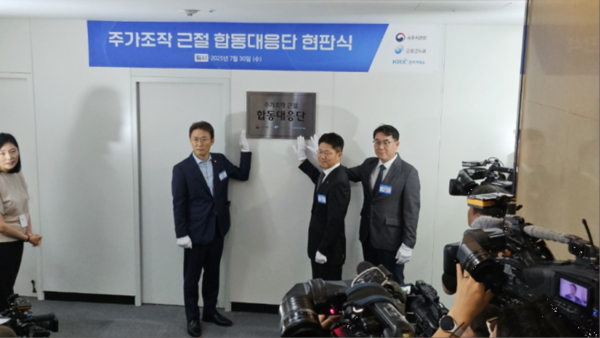 30일 금융위원회, 금융감독원, 한국거래소는 서울 여의도 한국거래소 마켓타워2 11층에서 '주가조작 근절 합동대응단' 출범 현판식을 열었다.