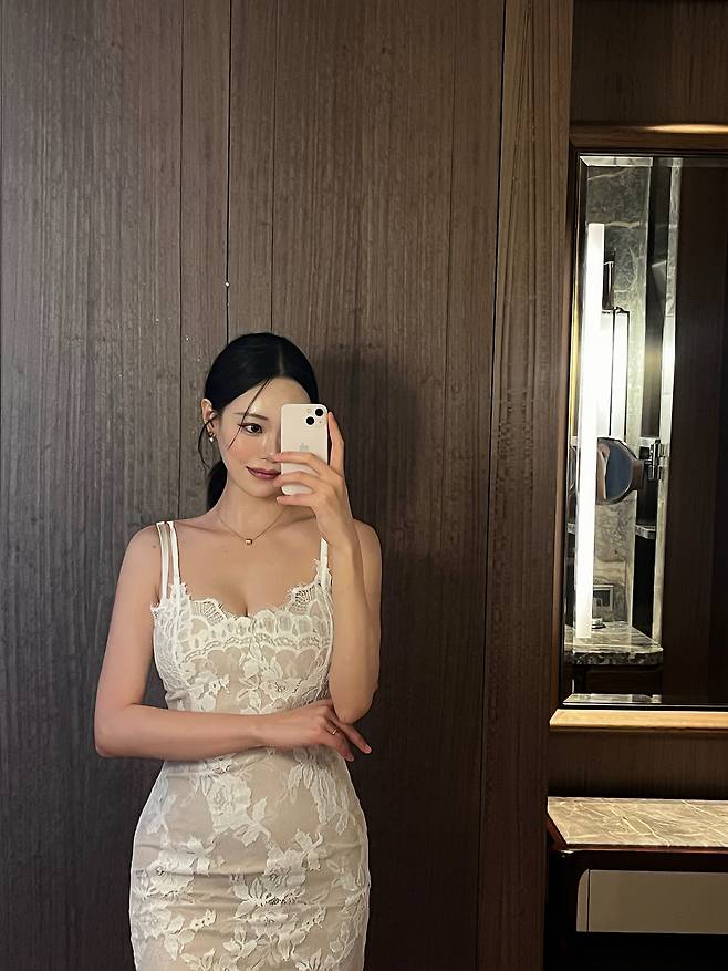 단독 착장만으로도 존재감이 확실한 화이트 레이스 롱원피스는