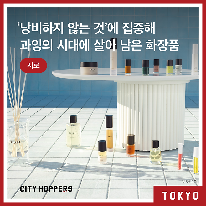 비결이 있었어요. 선택과 집중이었죠. 메이크업 제품에 힘을 빼고, 집콕 라이프를 반영해 매월 다양한 향 제품을 출시했어요. 알코올 소독제에도 향을 첨가해 전무후무한 ‘코로나 대비 필수 용품’을 만들어냈죠. 이에 더해 시로 카페, 피부 관리숍인 시로 뷰티까지 인기를 얻으며, 시로의 심플한 세계관은 일본 소비자들을 타이트하게 사로잡았어요.