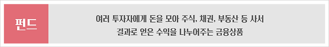 펀드는 여러 사람의 돈을 모아 기업이나 금융상품에 투자하는 것입니다. 주식 1주를 사는 것은 비싸지 않을 수 있지만, 여러 개의 기업과 상품을 동시에 사려면 큰돈이 필요합니다. 펀드는 이렇게 뭉칫돈으로 여러 개의 기업이나 다양한 자산에 투자하며, 적은 돈으로도 펀드에 가입할 수 있고, 수익도 나누어 받을 수 있습니다.