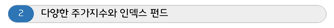 우리나라의 코스피(KOSPI), 코스닥(KOSDAQ)을 비롯해 미국의 다우 존스(Dow Jones), S&P 500, 나스닥(Nasdaq)과 같은 각국의 시장을 대표하는 주가지수들이 있으며, 이러한 지수를 추종하는 인덱스 펀드들이 있습니다. 우리나라 주식시장에도 저렴한 비용으로 거래될 수 있도록 만든 인덱스펀드나 인덱스 ETF(상장지수펀드)를 통해 투자자들도 인덱스 펀드 상품에 쉽게 가입할 수 있습니다.