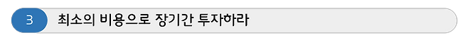 존 보글은 결과적으로 비용이 저렴한 인덱스 펀드에 투자하여 비용을 절감한 만큼을 장기간에 성과로 누적시키는 효과를 투자자들에게 최고의 자산관리 방법이라고 소개한 것입니다. 실제로 시장 전체 주가지수를 따르는 인덱스 펀드들은 다른 펀드들에 비해 훨씬 비용이 저렴합니다.