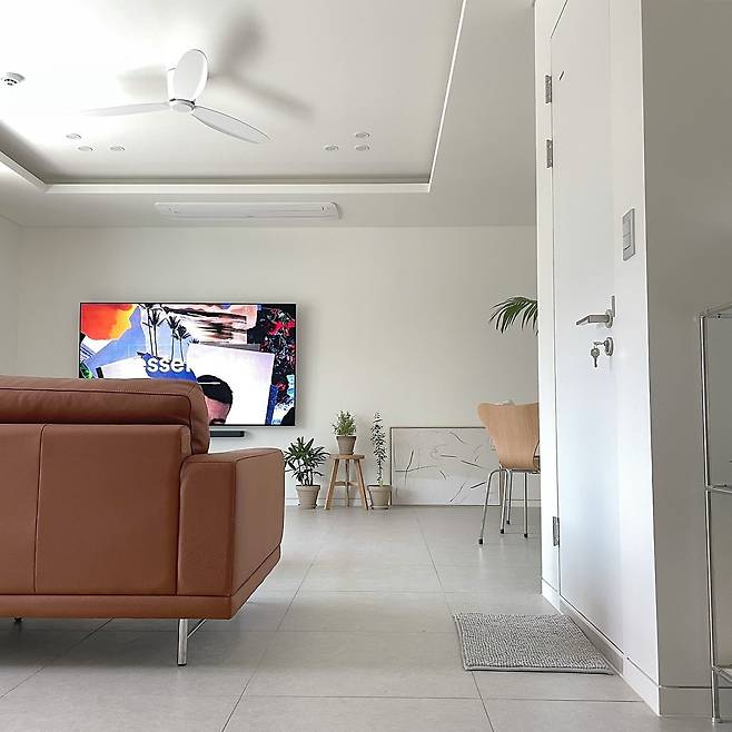 남편의 고집으로 들인 85인치 TV와 레더 소파는 기능성과 미적 균형을 동시에 만족시킨다. 집 내부를 관통하는 인테리어의 공통점은, 어떤 아이템을 선택하든 결국 깔끔함과 오래 봐도 질리지 않는 디자인이었다는 점이다.