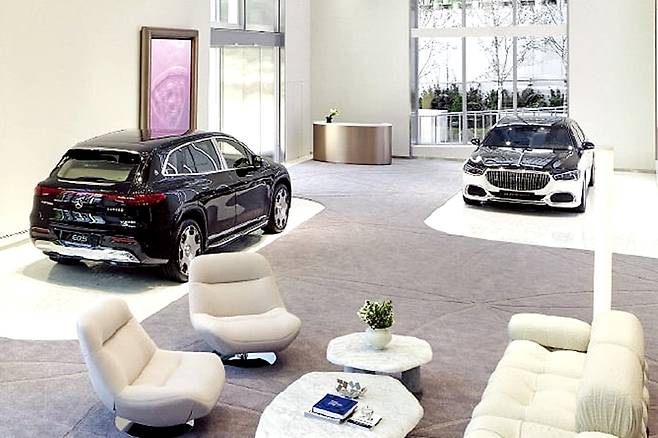 실내도 전통과 미래가 교차한다. 1층 전시존에는 S‑클래스와 GLS 등 최신 마이바흐가 놓였고, 3층 ‘살롱 프리베’에는 자연광이 스미는 정원이 자리 잡아 도심 속 오아시스 같은 여유를 준다. 방문객은 프라이빗 엘리베이터로 이동하며 공간마다 다른 조도·음향·향기를 경험한다. 또한 지하에는 전용 서비스 베이 5개가 마련돼 정비·세차·디테일링을 한 공간에서 해결한다. 예약 고객은 전담 어드바이저·바리스타 서비스와 함께 2층 전용 VIP 라운지에서 차량을 인도받는다. 도무지 전시장이라고 말할 수 없는, 세계 어디에서도 찾아보기 힘든 서비스이다.