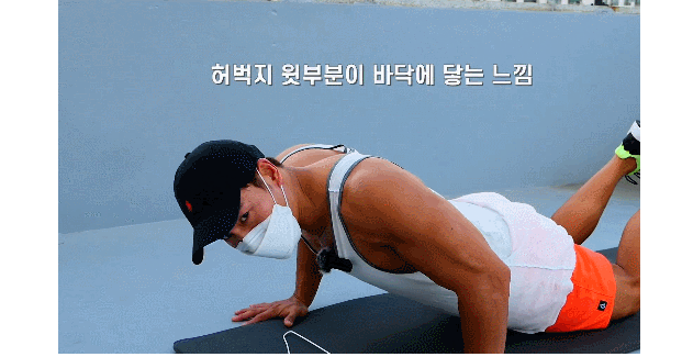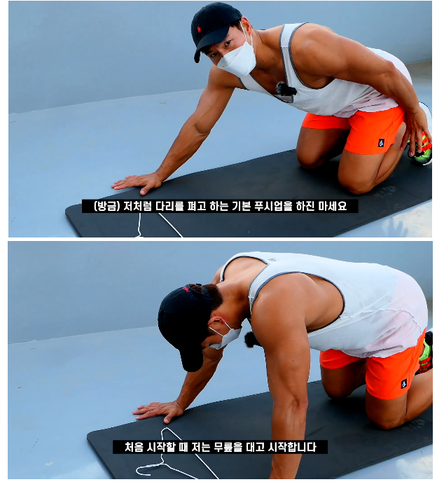 무릎대고 푸시업(니 푸시업): 무릎을 바닥에 대고 상체만 사용