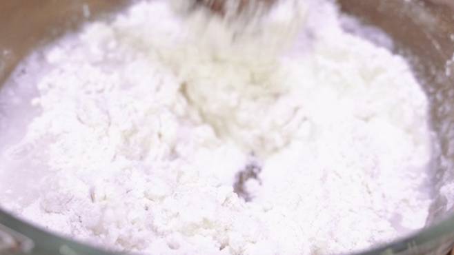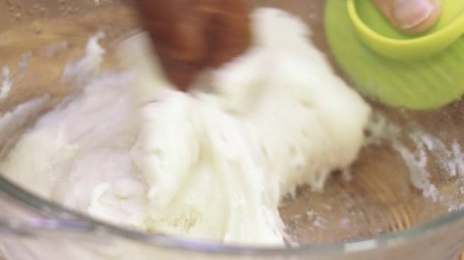 그리고 뜨거운 물을 조금씩 부어가며 반죽을 해주세요. 손이 아닌 주걱류를 이용해 주는 것이 좋아요.