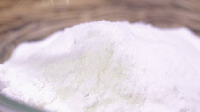 먼저 전자레인지 용기를 준비해 주세요. 전자레인지 용기가 아닐 경우 깨질 수 있어 위험해요. 전자레인지 용기에 찹쌀가루, 소금, 설탕을 넣어 주세요.