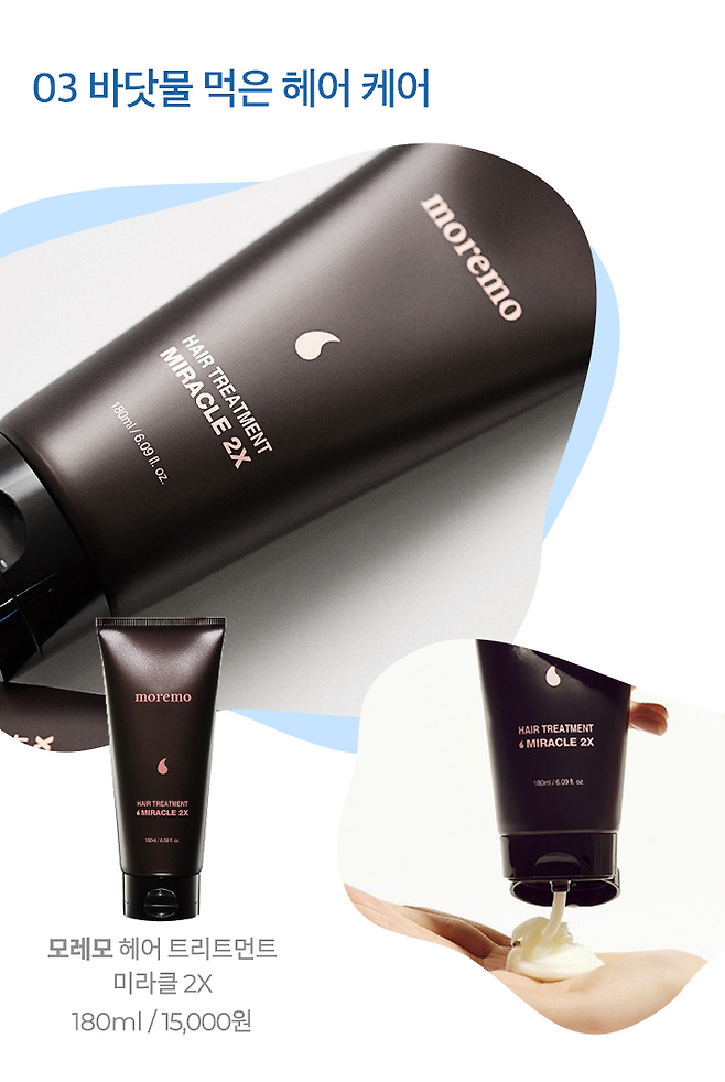 수상 레저를 즐긴 후 바닷물에 뻣뻣해진 머릿결을 회복시켜주기 위한 트리트먼트! 모레모의 헤어 트리트먼트는 탈색모 전용 트리트먼트라고 불릴 정도로 손상된 헤어를 빠르게 효과적으로 케어해주는 제품인데요. 고영양의 단백질 성분이 한 번의 사용으로도 부드러운 머릿결을 만들어주죠. 붕 뜨던 부스스한 머리도 차분하게 만들어주는 제품이라 여행지는 물론 집에서도 꾸준히 사용하고 있어요.