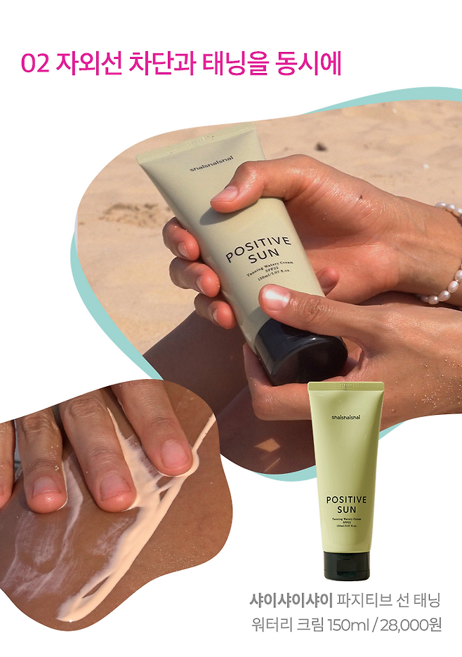 야외 수영장의 선베드에 누워있는 동안 얼룩 없이 균일한 태닝을 도와주는 태닝 크림인데요. 자극을 주는 자외선 파장을 차단해 피부는 보호해 주면서 예쁜 태닝 피부를 만들어주죠. 바를 땐 바디 로션처럼 촉촉한 수분감이 느껴지면서 바른 후에는 끈적임이나 미끌거림 없이 깔끔하게 마무리되어서 크림을 바른 후에도 편하게 활동하기 좋아요. 올여름 건강하고 탄탄한 태닝 피부를 만들어보고 싶다면 샤이샤이샤이의 태닝 워터리 크림으로 도전해 보세요!