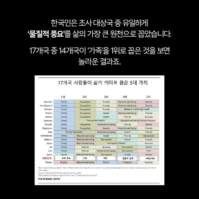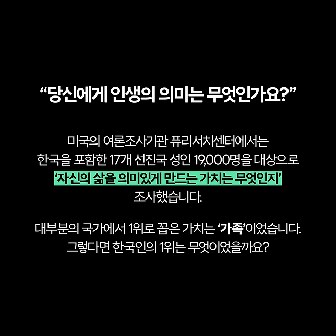 한국인의 삶의 의미는? 3위 가족, 2위 건강, 1위 '이것'