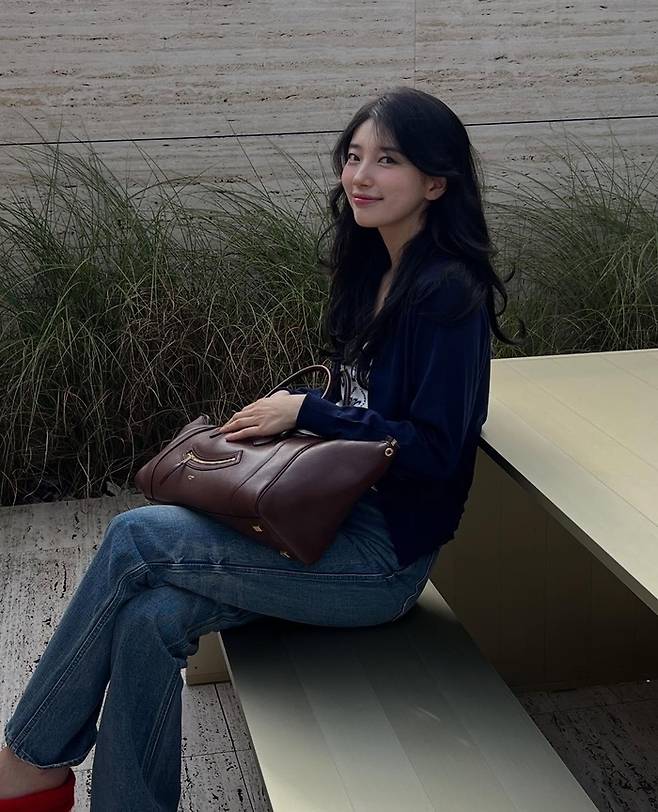 공개된 사진 속 수지는 캐주얼하면서도 사랑스러운 매력을 뽐냈다. 한 명품 브랜드의 티셔츠에 편안한 청바지, 가디건을 매치한 패션은 자연스럽게 빛나는 수지의 아름다움을 강조했다.