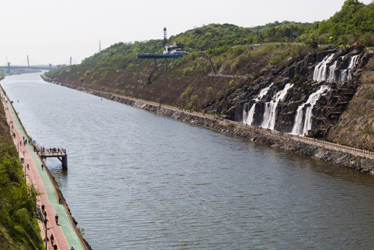규모: 높이 45m, 폭 150m의 반원형 인공폭포