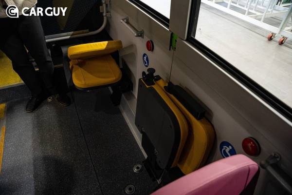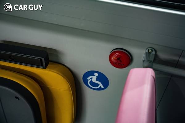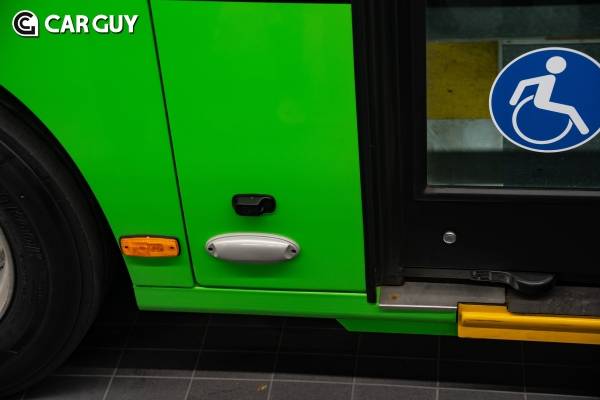 또한 에어 서스펜션이 적용되어 있어 한쪽 서스펜션의 차고를 내려 차체를 옆으로 기울이는 ‘닐링’이 가능하다. 덕분에 중문에 있는 휠체어 리프트를 펼쳤을 때 더 쉽게 탑승할 수 있다. 또한 차고를 위로 올릴 수도 있어 심한 방지턱이나 언덕길에서도 부담 없이 운행 할 수 있을 것으로 보인다. 휠체어는 2대까지 탑승이 가능하다. 장애인용 하차벨이 별도 적용되어 있어 보다 수월한 하차가 가능하다.