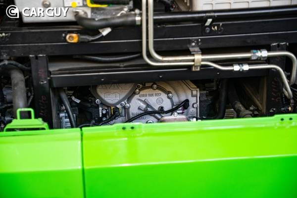 모터는 ZF사 센트럴 모터를 사용했다. 출력은 160kW이다. 전기차 특유의 토크로 25%의 등판능력을 확보했다. 경사로 밀림 방지가 있어 언덕이 많은 마을버스 주행환경에 좋을 것으로 보인다.