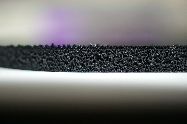 IPX3627은 완전한 방수는 아니지만 촘촘한 구조 덕분인지 물의 흡수속도가 매우 느린 편입니다. 때문에 물이나 음료를 흘렸을 때에는 어느 정도 대처할 여유 시간이 있다고 보시면 될 거 같습니다. 게다가 손에서 발생하는 땀이나 공간의 습기에도 강하기 때문에 패드가 변형되는 일은 걱정하지 않아도 되리라 생각합니다.
