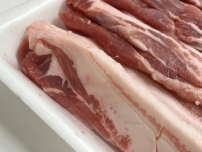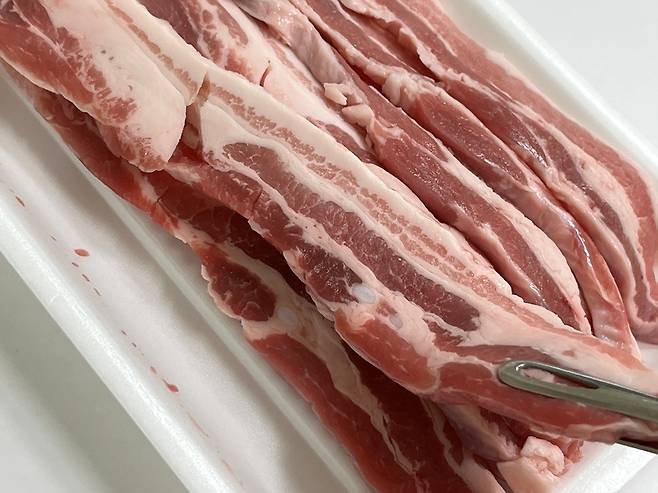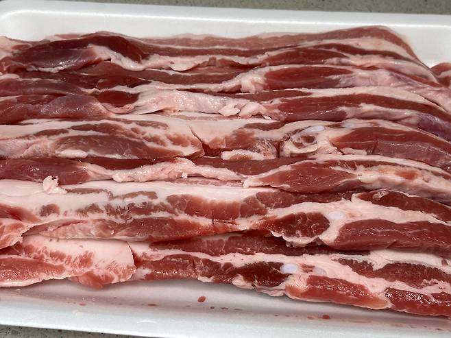 삼겹살 고를 때 고기의 지방이 희고 윤기가 나는 것이 좋습니다. 반대로 노르스름하거나 회색빛이 도는 경우는 산화나 냉장 보관 기간이 길어져 오래된 고기일 가능성이 있습니다.