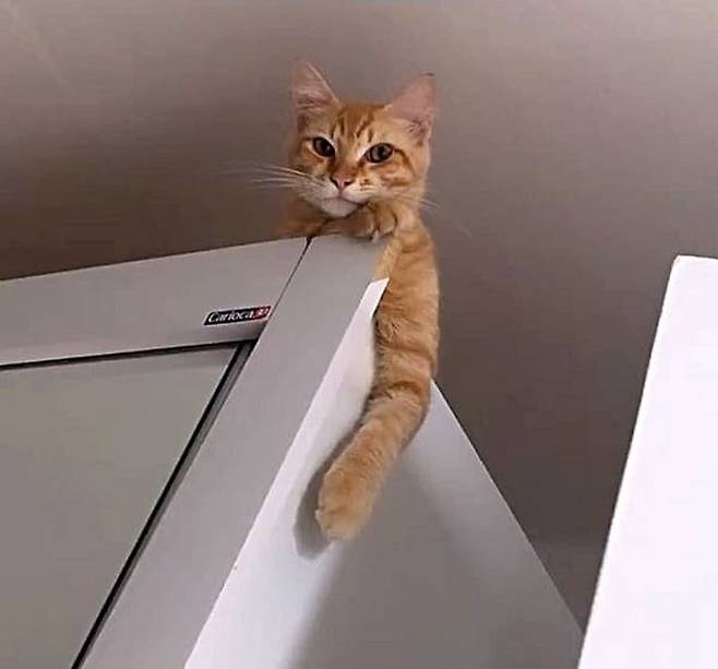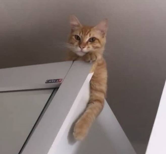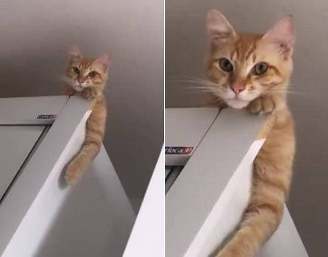 뒤늦게 알고 봤더니 고양이는 옷장 위에 들어가서 잠을 자고 있었다고 하는데요. 정말 못 말리는 고양이 아닙니까.