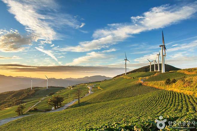 강원 태백시 창죽동에 위치한 매봉산풍력발전단지는 일명 ‘바람의 언덕’으로 불리며, 자연과 인공 구조물이 만들어내는 특별한 풍경으로 사랑받는 명소입니다. 고랭지 배추밭이 넓게 펼쳐진 언덕 위에는 하얀 풍력발전기가 줄지어 서 있고, 이 조화로운 모습은 마치 유럽의 어느 전원 풍경을 떠올리게 해요.