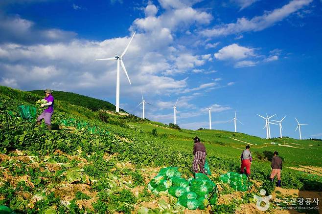 바람과 풍차, 그리고 초록 배추밭의 조화 '태백 바람의 언덕'